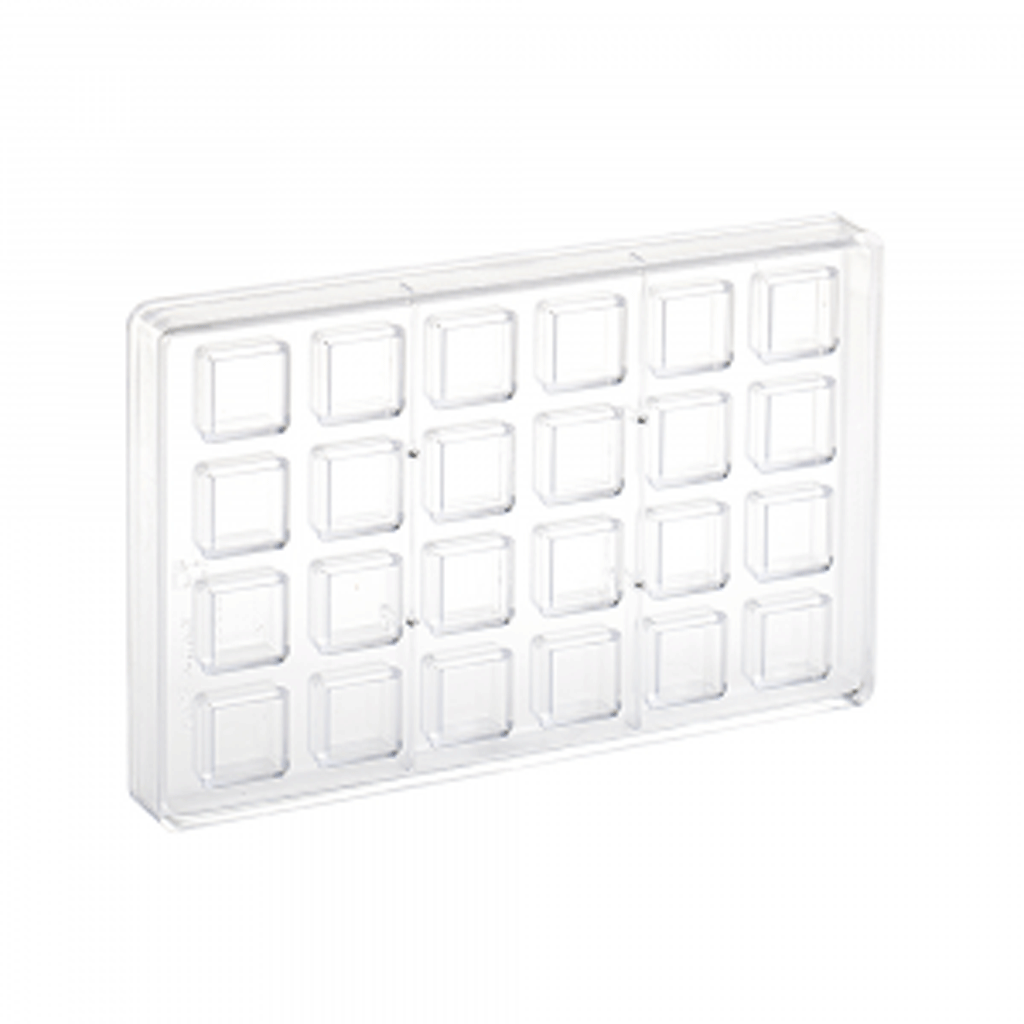 Chocolate mould for classic square pralines.