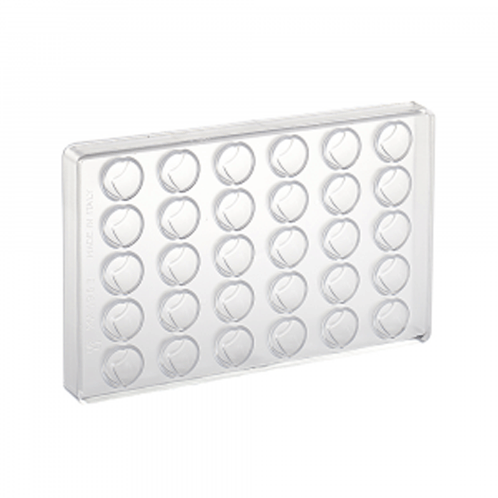 Chocolate mould for round pralines on two levels.