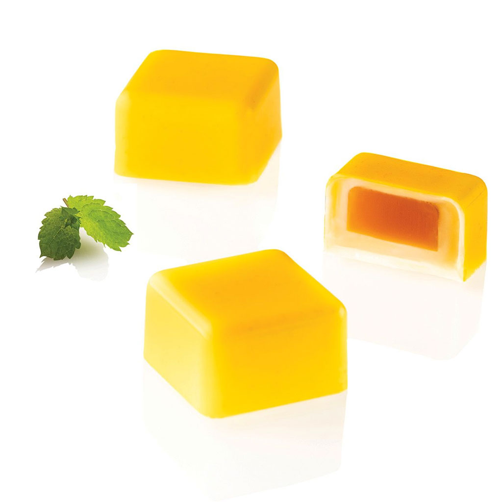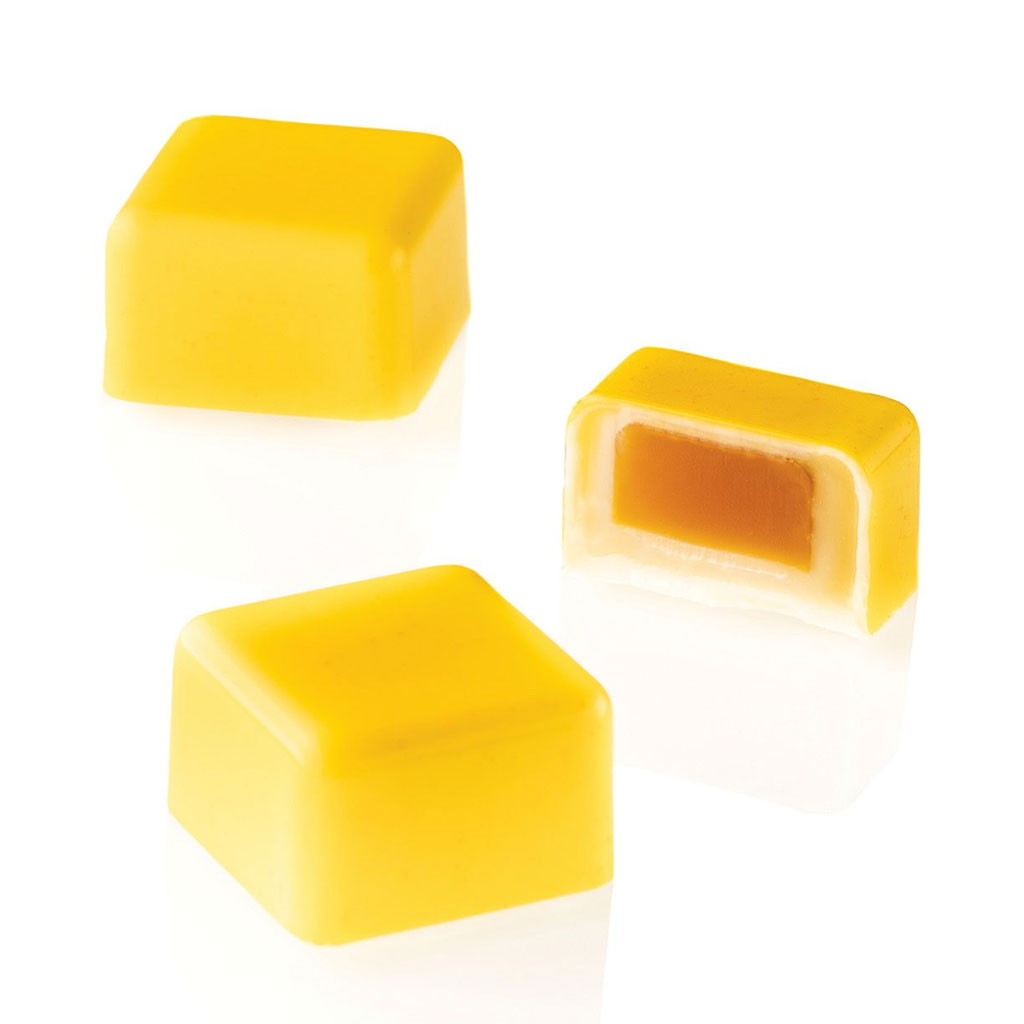 Unleash your creativity and create pralines combining the taste of chocolate with different flavors and textures. 25×25 h 15 mm | 1×1 h 0.6”